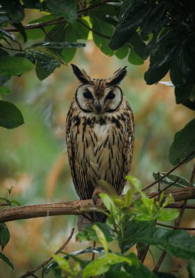 Tijdens ons bezoek kregen we de kans om vanuit zorgvuldig geplaatste kijkhutten en platforms vogels van dichtbij te observeren. Ik zou eindeloos kunnen vertellen over de ontmoeting met twee striped owls, moeder en kind. Of over de white-collared manakin, die ik al hoorde nog vóór ik hem zag, met het herkenbare klappen van zijn vleugels als onderdeel van zijn dans. Maar de echte magie zat verscholen in het verhaal van dit krachtige, individuele initiatief: een klein paradijs op een voormalige plantage waar leven weer zijn weg weet te vinden. Tegelijkertijd werd ook duidelijk hoe kwetsbaar herstel is. Bij de buren zagen we een hectare herplant met Europese subsidies, maar slechts met één snelgroeiende boomsoort. Juan vertelt: gekozen vanwege de opbrengst van houtkap, maar de natuur is hier niet mee geholpen.