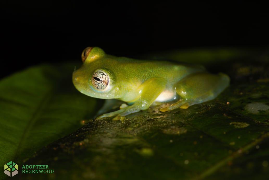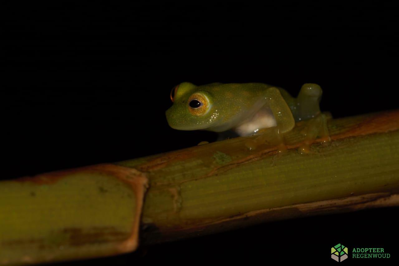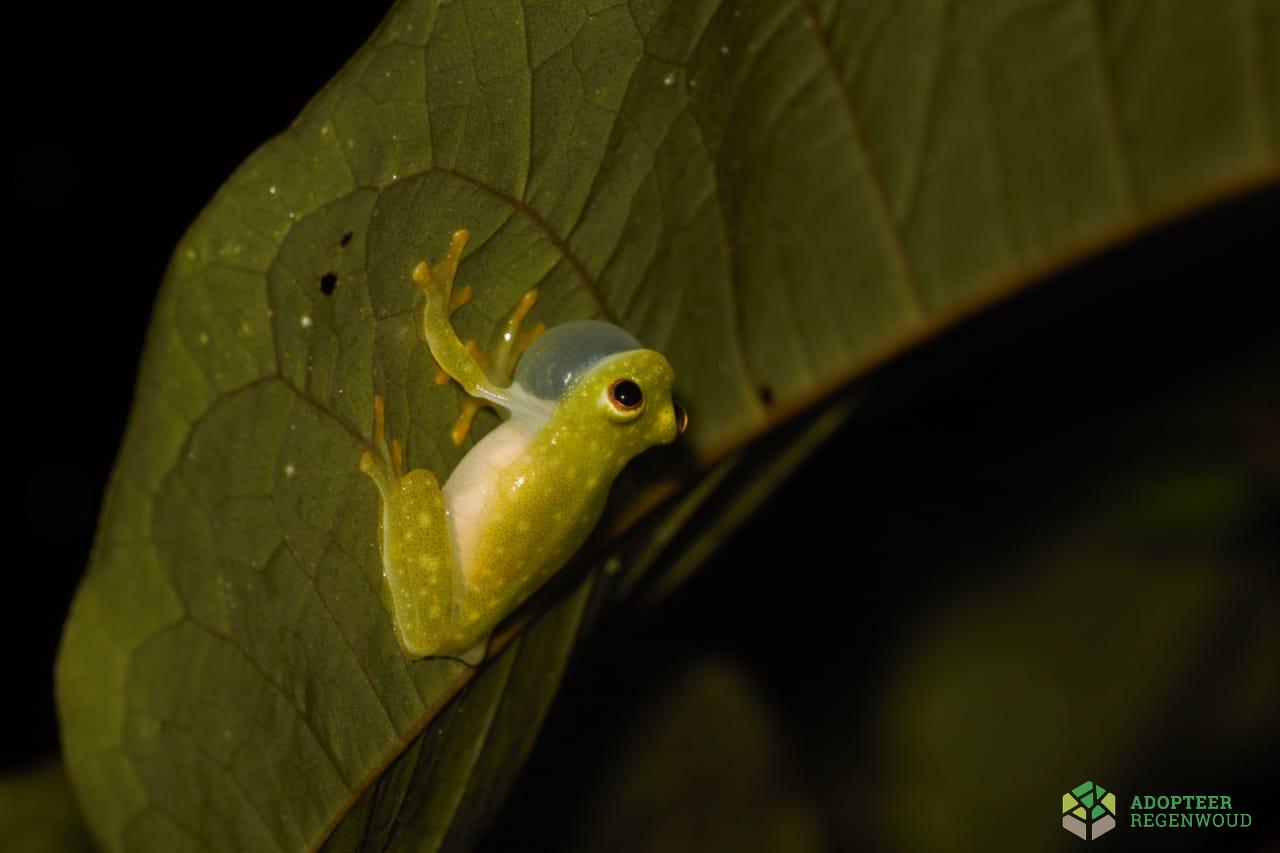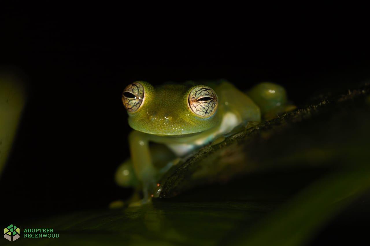 Glaskikkers zijn een bijzondere groep amfibieën, de kleine (2-4 cm) kikkers hebben transparante buikjes waardoor de organen zichtbaar zijn. Om ervoor te zorgen dat hun eieren niet worden opgegeten door andere dieren, leggen ze de ei pakketjes op bladeren die boven snelstromend water groeien. De eieren ontwikkelen zich op het blad en als de kikkervisjes groot genoeg zijn breken ze uit hun ei pakketje en vallen ze in het troebele water.