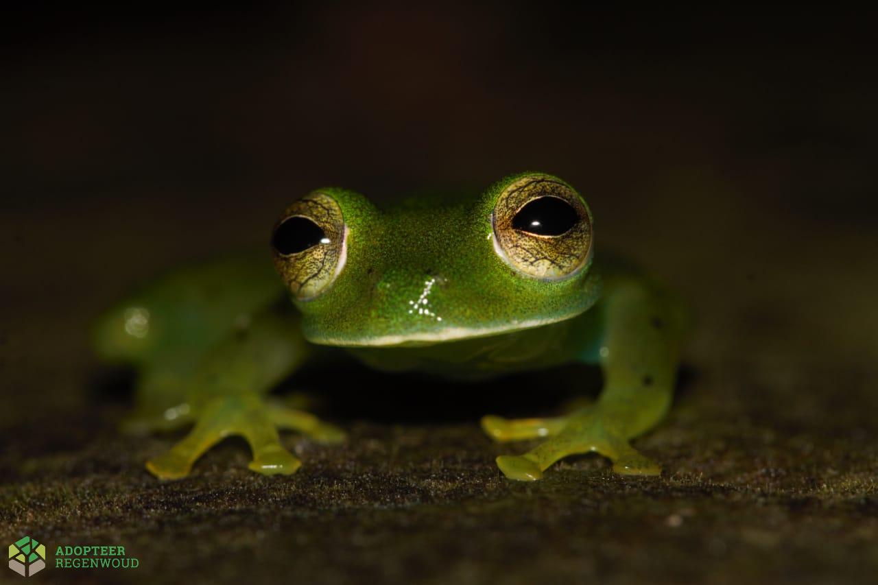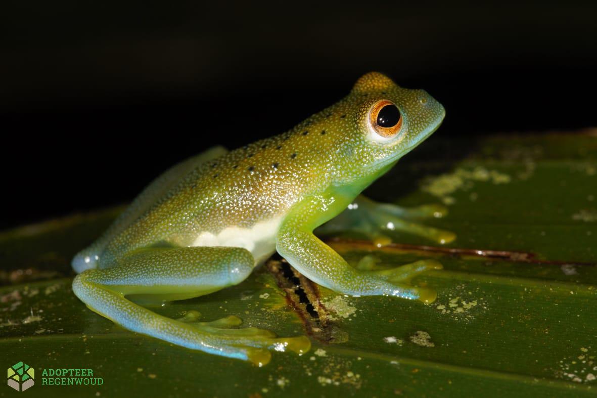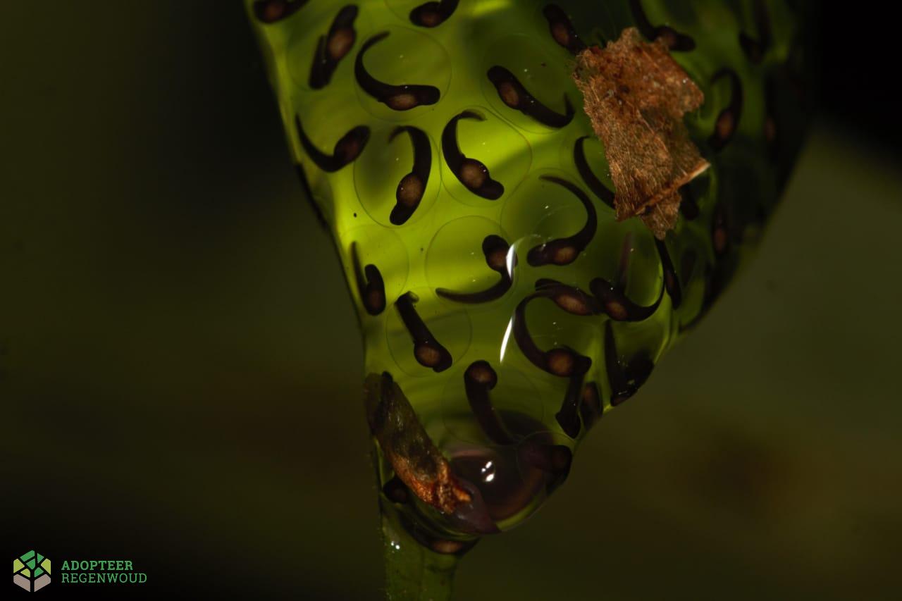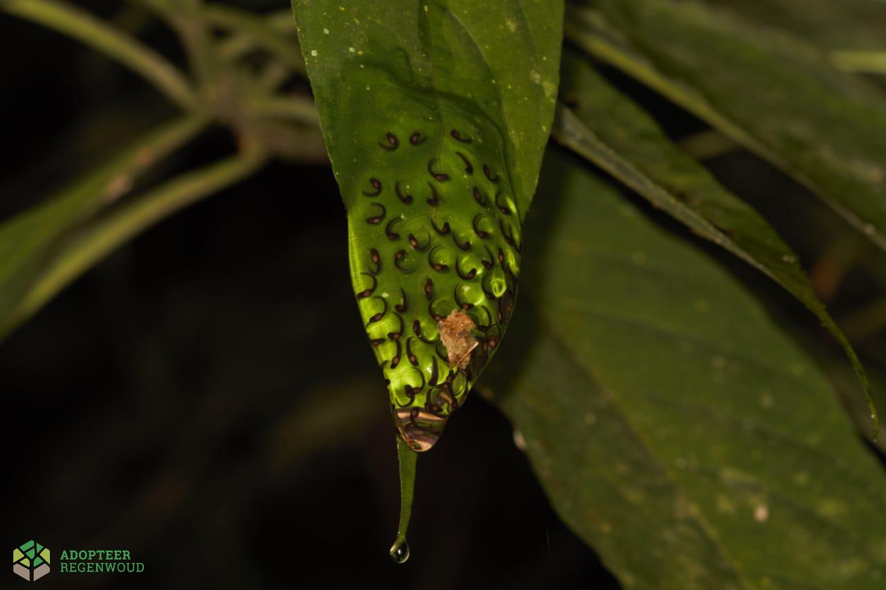 Glaskikkers zijn een bijzondere groep amfibieën, de kleine (2-4 cm) kikkers hebben transparante buikjes waardoor de organen zichtbaar zijn. Om ervoor te zorgen dat hun eieren niet worden opgegeten door andere dieren, leggen ze de ei pakketjes op bladeren die boven snelstromend water groeien. De eieren ontwikkelen zich op het blad en als de kikkervisjes groot genoeg zijn breken ze uit hun ei pakketje en vallen ze in het troebele water.